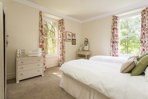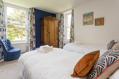 Mackintosh is a twin room with large ensuite shower and double window view over the garden and Howgill Fells.