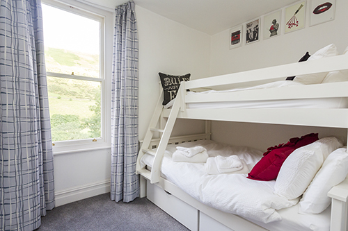 Smaller bunkbed room with ensuite shower and single window view over the garden and Howgill Fells